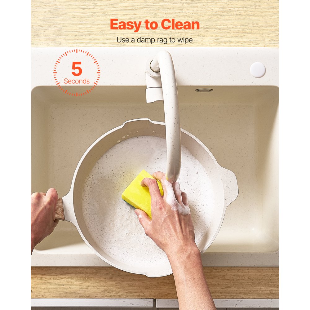 Material de primera calidad: Fabricado con un revestimiento antiadherente de piedra Maifan, este juego de utensilios de cocina garantiza una fácil liberación de los alimentos y una limpieza sin esfuerzo. El interior soporta temperaturas de hasta 380 °C, lo que lo hace confiable para el uso diario. Los utensilios de cocina no contienen plomo, cadmio ni PFOA. Cocina con menos aceite para una experiencia culinaria más saludable