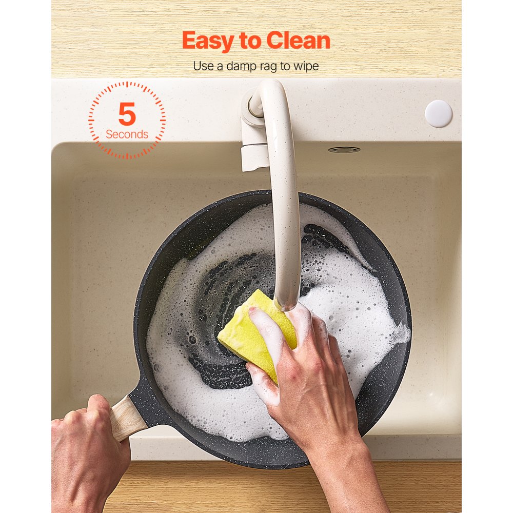 Material de primera calidad: Fabricado con un revestimiento antiadherente de piedra Maifan, este juego de utensilios de cocina garantiza una fácil liberación de los alimentos y una limpieza sin esfuerzo. El interior soporta temperaturas de hasta 380 °C, lo que lo hace confiable para el uso diario. Los utensilios de cocina no contienen plomo, cadmio ni PFOA. Cocina con menos aceite para una experiencia culinaria más saludable