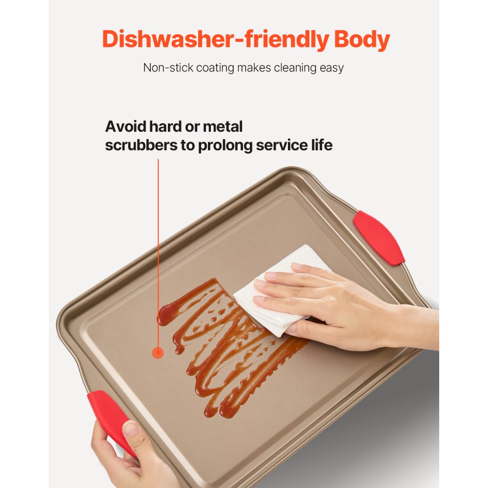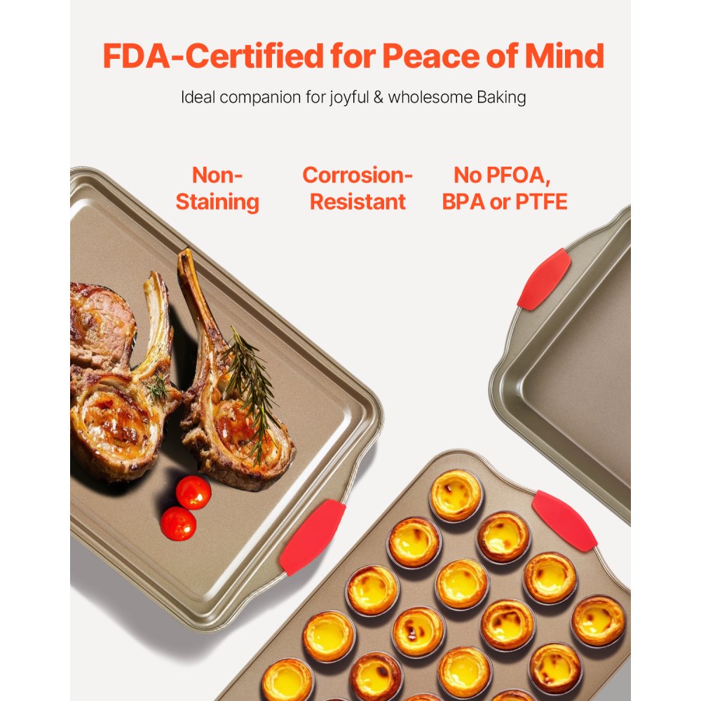 Material confiable y excepcional: Fabricado con materiales resistentes a rayones, manchas y corrosión, este juego de bandejas para hornear no contiene PFOA, BPA ni PTFE. Disfrute de un rendimiento confiable con cada uso. Ideal para sus bandejas para hornear galletas, moldes para hornear y más
