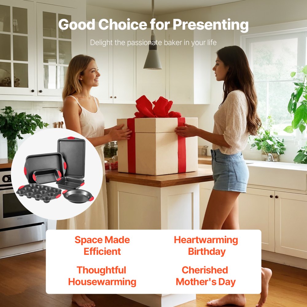 Juego de Sartenes para Hornear, 6 uds, Bandejas y Hojas de Acero al Carbono Antiadherentes, Utensilios de Cocina Apilables para Horno con Asas de Silicona, para Hornear Galletas, Negro
