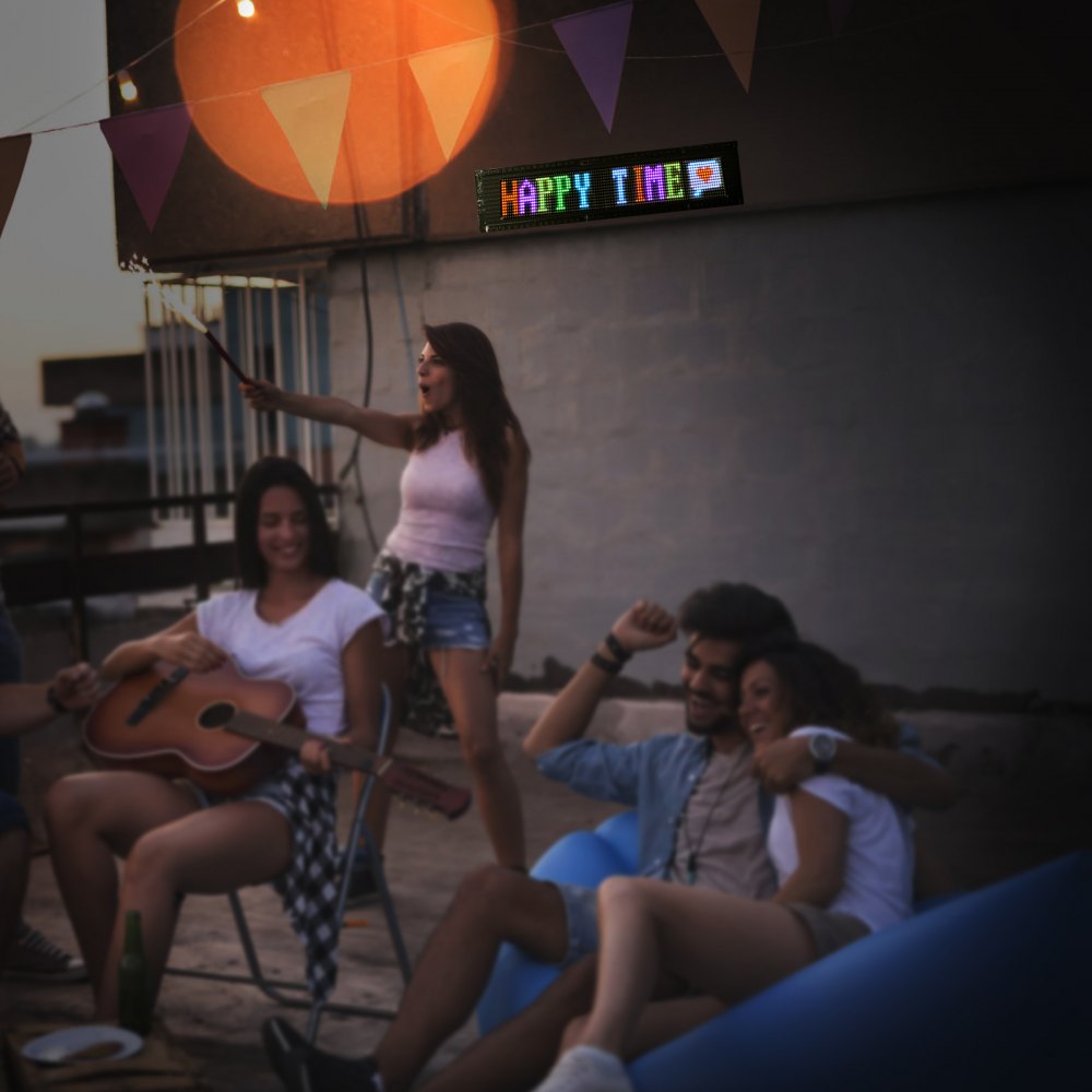Control inteligente de aplicaciones: el letrero LED programable se controla a través de una conexión de aplicación Bluetooth, lo que admite la conexión a múltiples pantallas LED simultáneamente, lo que hace que su tienda sea más llamativa. Puede personalizarlo según sus propias necesidades y escenarios, diseñar texto, patrones, animaciones y también ajustar el brillo y la velocidad para satisfacer perfectamente sus propios requisitos.