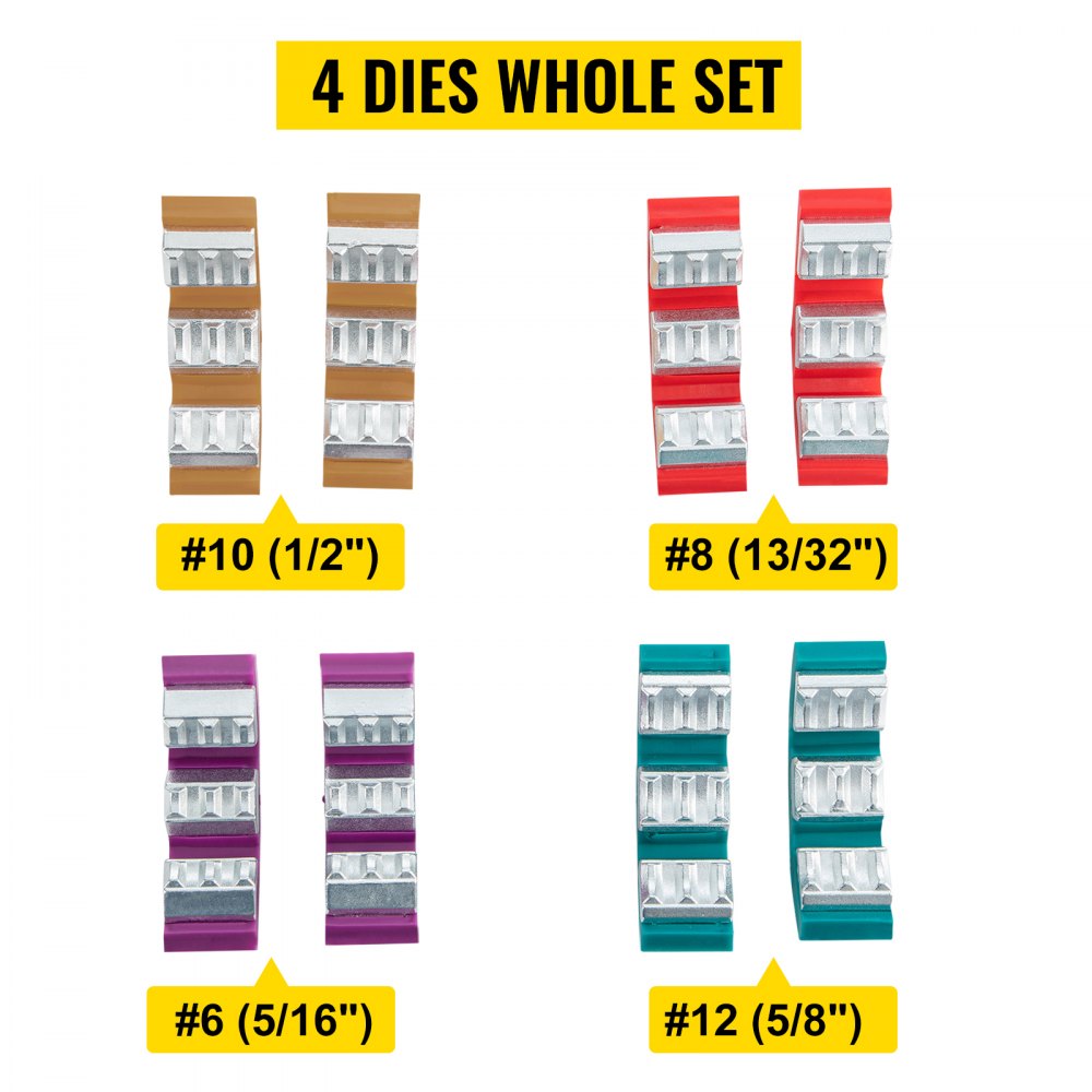 【CONFIGURACIÓN INSTANTÁNEA】- Dispone de los troqueles completos de los tamaños de mangueras y accesorios normales. Los troqueles se pueden encajar rápidamente en el accesorio de prensa, no necesita pasadores o tornillos.