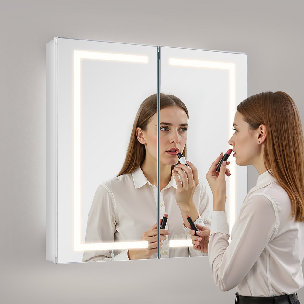 Antivaho de un toque: Con una función antivaho de un toque, el gabinete de espejo LED calienta rápidamente el centro del espejo para eliminar el empañamiento, lo que garantiza un reflejo claro incluso en condiciones de baño húmedo