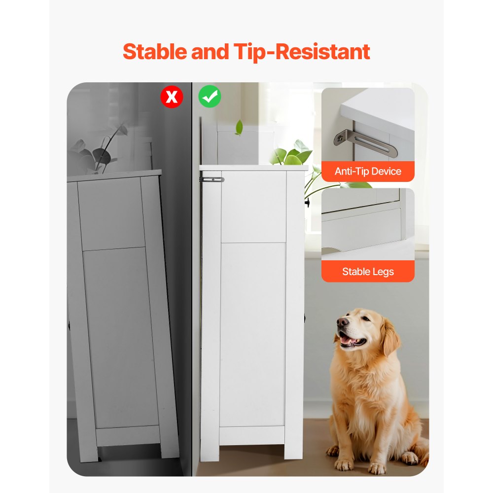 Estable con kit antivuelco: Nuestro mueble de baño independiente incluye un kit antivuelco seguro para montar en la parte trasera, lo que lo mantiene estable y evita que se vuelque. Las piezas numeradas facilitan el montaje