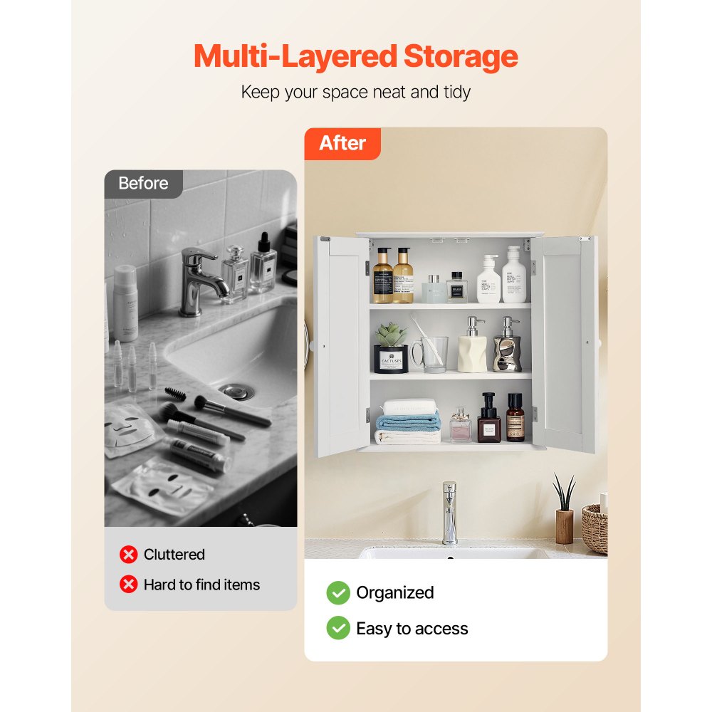 Armario de Pared para Baño 3 Niveles, con 2 Puertas y Estantes Ajustables, Ideal para Colocar sobre el Inodoro y Colgar en la Cocina o el Baño, Aglomerado + MDF, Blanco, 536 x 244 x 610 mm - Fontanería