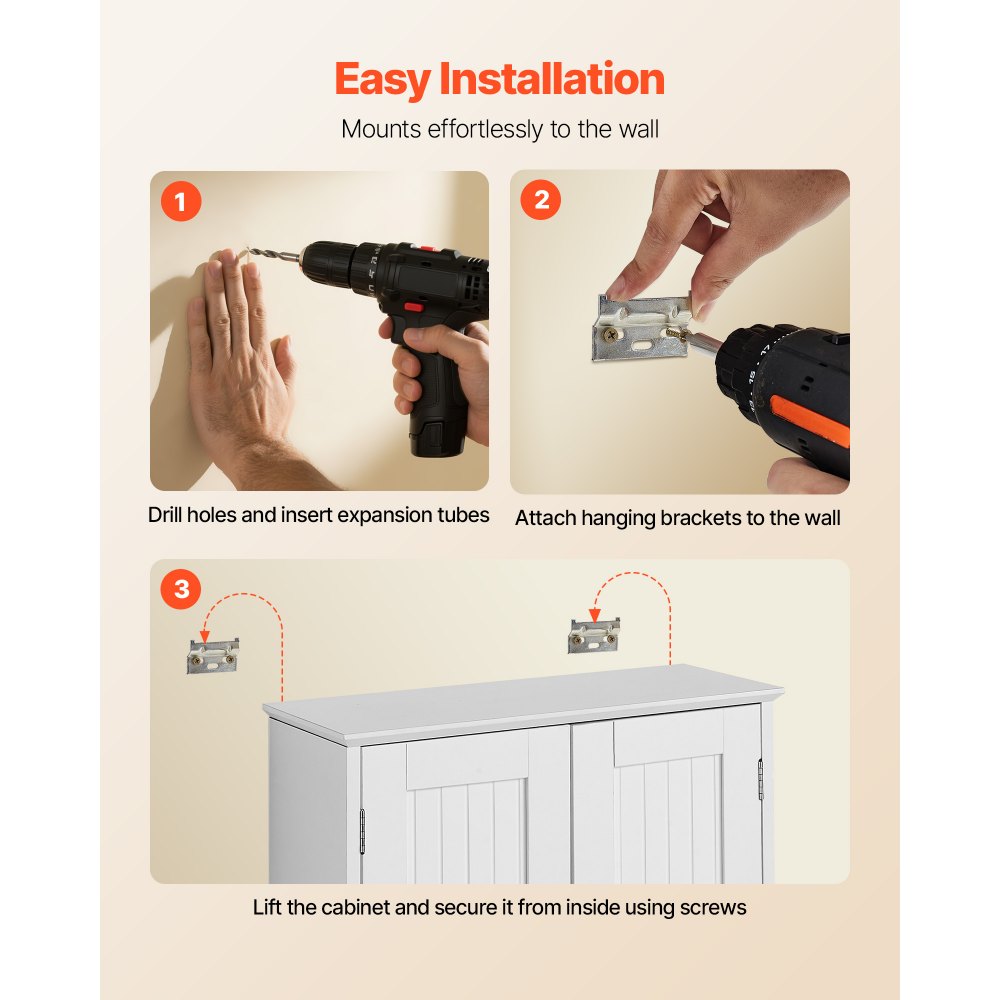 Fácil de instalar: Este mueble de baño de pared incluye un juego completo de herramientas de instalación e instrucciones detalladas. No se requieren conocimientos profesionales ni herramientas adicionales; incluso los principiantes pueden completar el montaje rápidamente