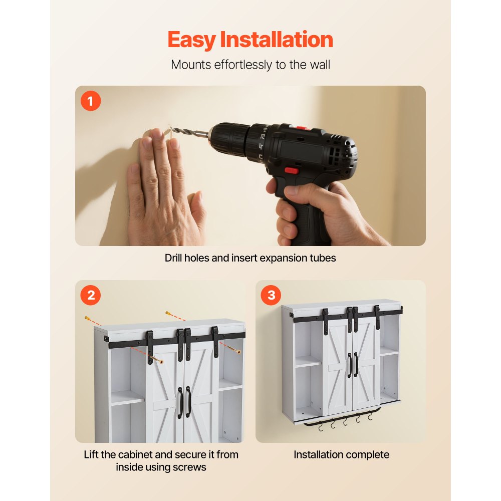 Fácil de instalar: Este armario de almacenamiento de pared incluye un juego completo de herramientas de montaje e instrucciones detalladas. No se requieren conocimientos profesionales ni herramientas adicionales: incluso principiantes pueden completar el montaje rápidamente