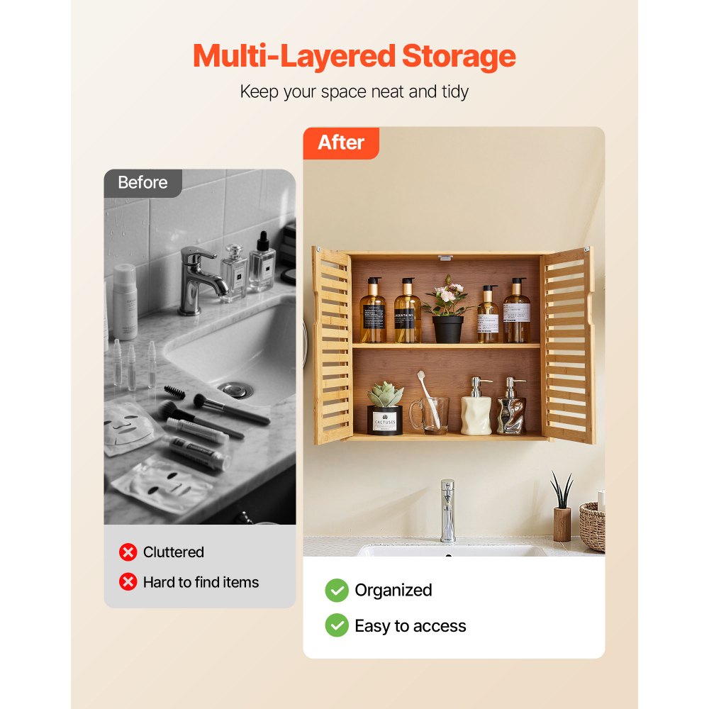 Almacenamiento multicapa y clasificado: Los compartimentos de almacenamiento científicos facilitan la clasificación de artículos. Este armario de baño colgante presenta un diseño multicapa bien pensado. Tiene espacio para botellas y latas de todos los tamaños, lo que permite transportarlas y guardarlas sin desorden