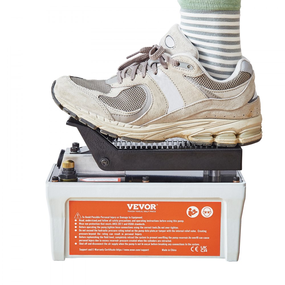 Un paso es todo lo que se necesita: Nuestra bomba neumática/hidráulica operada con el pie está equipada con aceite hidráulico, lo que elimina la necesidad de compras adicionales. ¡Está listo para usar nada más sacarlo de la caja! El diseño fácil de usar accionado por pie hace que la operación ahorre más trabajo. Simplemente aplique presión pisándolo suavemente y libere la presión rebotando hacia atrás.