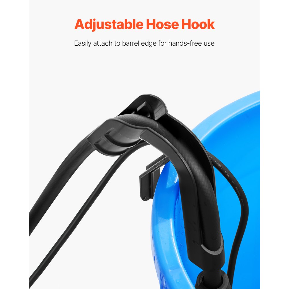 Gancho ajustable para manguera: El gancho ajustable para manguera puede sujetar la manguera de manera eficaz en su lugar, lo que garantiza que no se caiga durante el uso. Esta característica proporciona un flujo de agua suave e ininterrumpido, lo que evita fugas y tuberías sucias