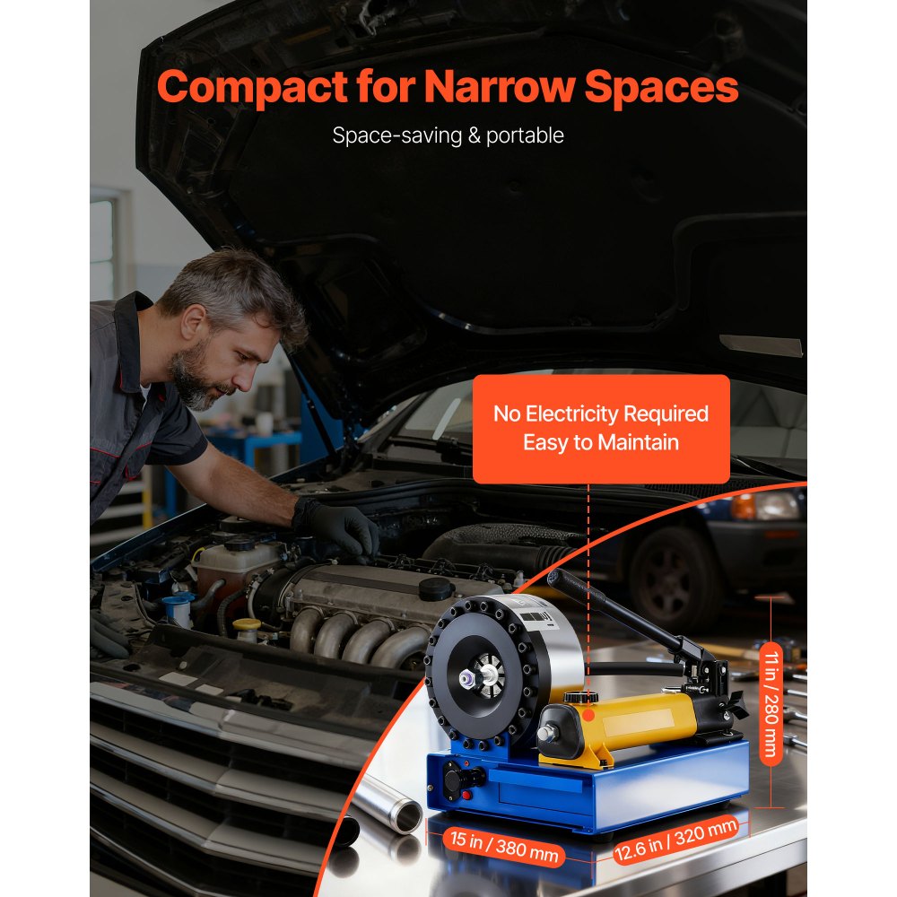 Crimpadora de Mangueras Hidráulicas de Alta Presión, con 8 Matrices y Rango de Crimpado 6-28 mm, para Tuberías de Aceite de Baja y Alta Presión, Mangueras de Gas/Agua/Aire Acondicionado - Fontanería