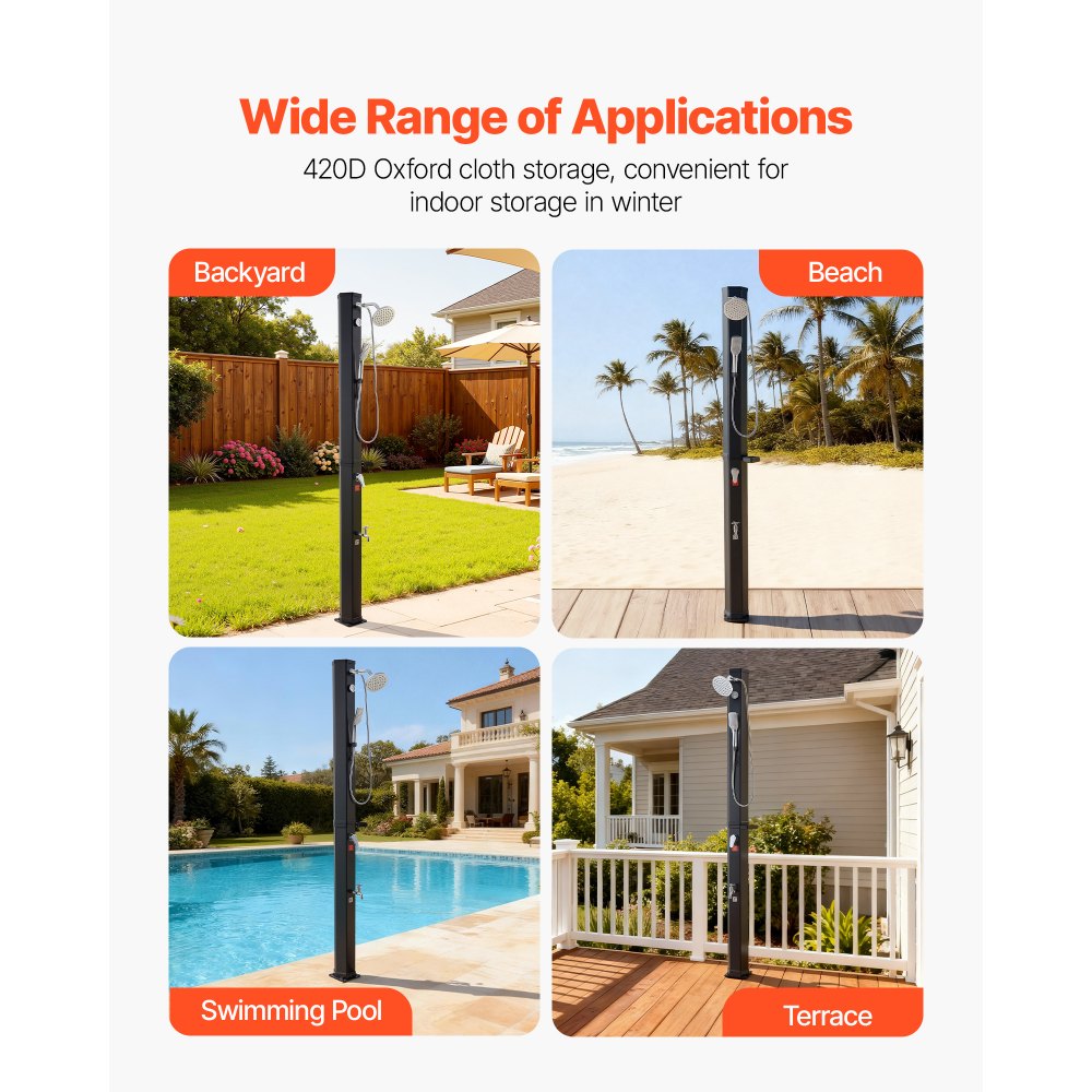 Disfrutar de las duchas al aire libre: Ideal para enjuagarse antes o después de nadar o refrescarse en días calurosos; ideal para usar en el jardín, la playa, la piscina o el patio; viene con una cubierta Oxford 420D para protegerse contra el clima; también se recomienda almacenamiento en interiores durante los meses más fríos