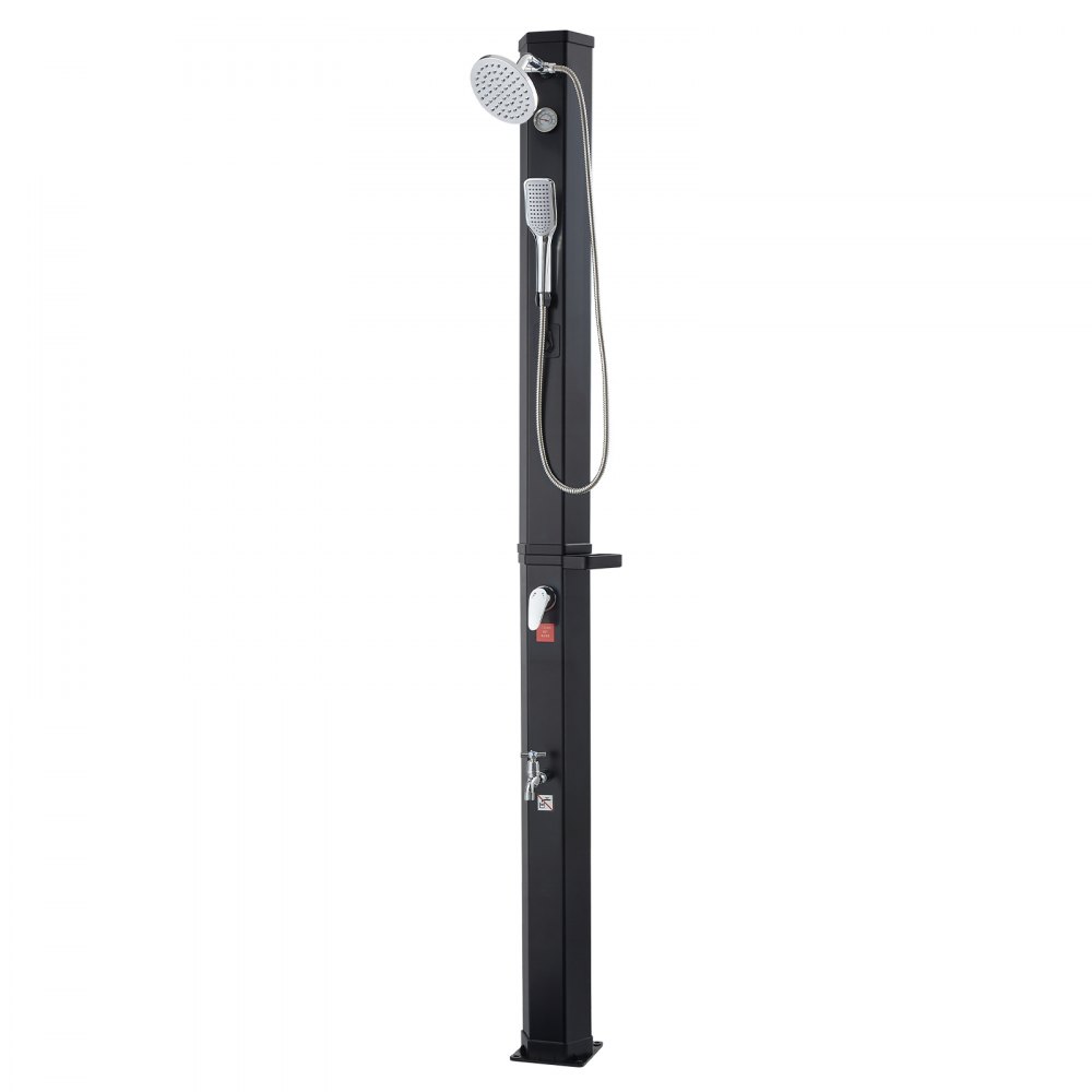 Ducha Solar 40 Litros 205 cm, Ducha Solar Exterior con Grifo y Rociador de Mano, Cabezal Giratorio 360° Ajuste de Agua Fría y Caliente Máx. 60 °C, PVC Reforzado, para Piscina Patio Playa, Negro - Fontanería