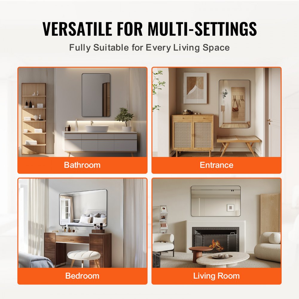 Instalación flexible para cualquier habitación: Este espejo se puede montar fácilmente en baños, pasillos, salas de estar o dormitorios, y se combina a la perfección con varios estilos de interiores. Su diseño adaptable le permite adaptarse cómodamente a diferentes diseños.