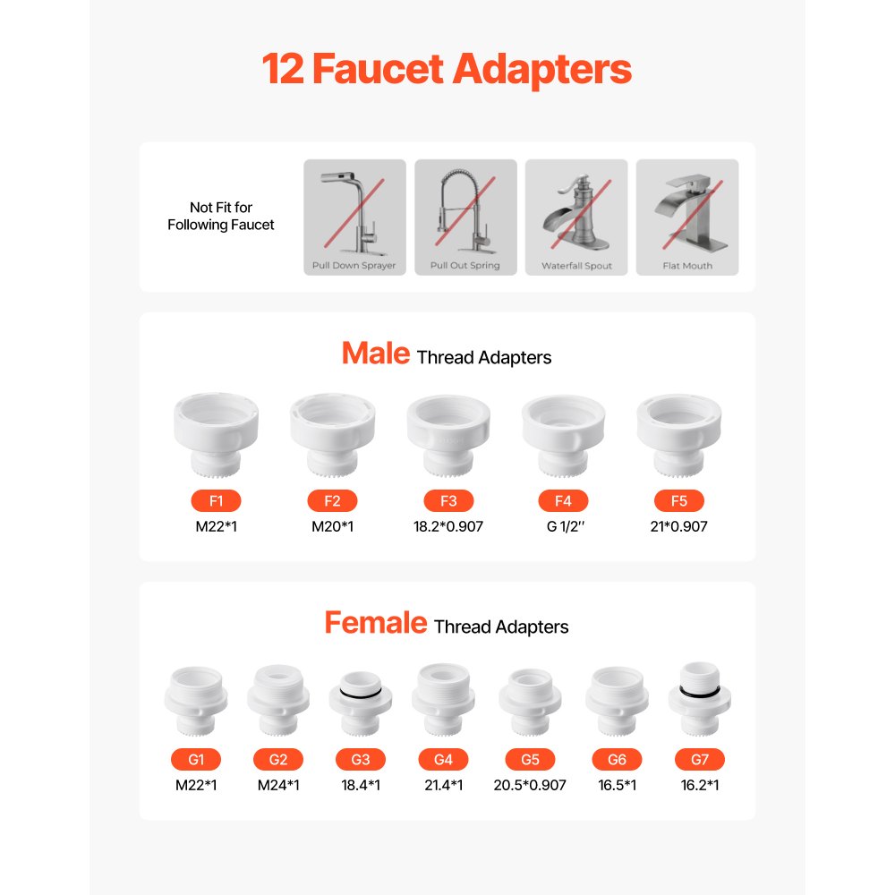 Instalación sencilla: El filtro de agua para grifo incluye 12 adaptadores para que pueda seleccionar el adecuado según sus necesidades. Con las herramientas de fácil instalación incluidas, la instalación se completa en solo 5 minutos