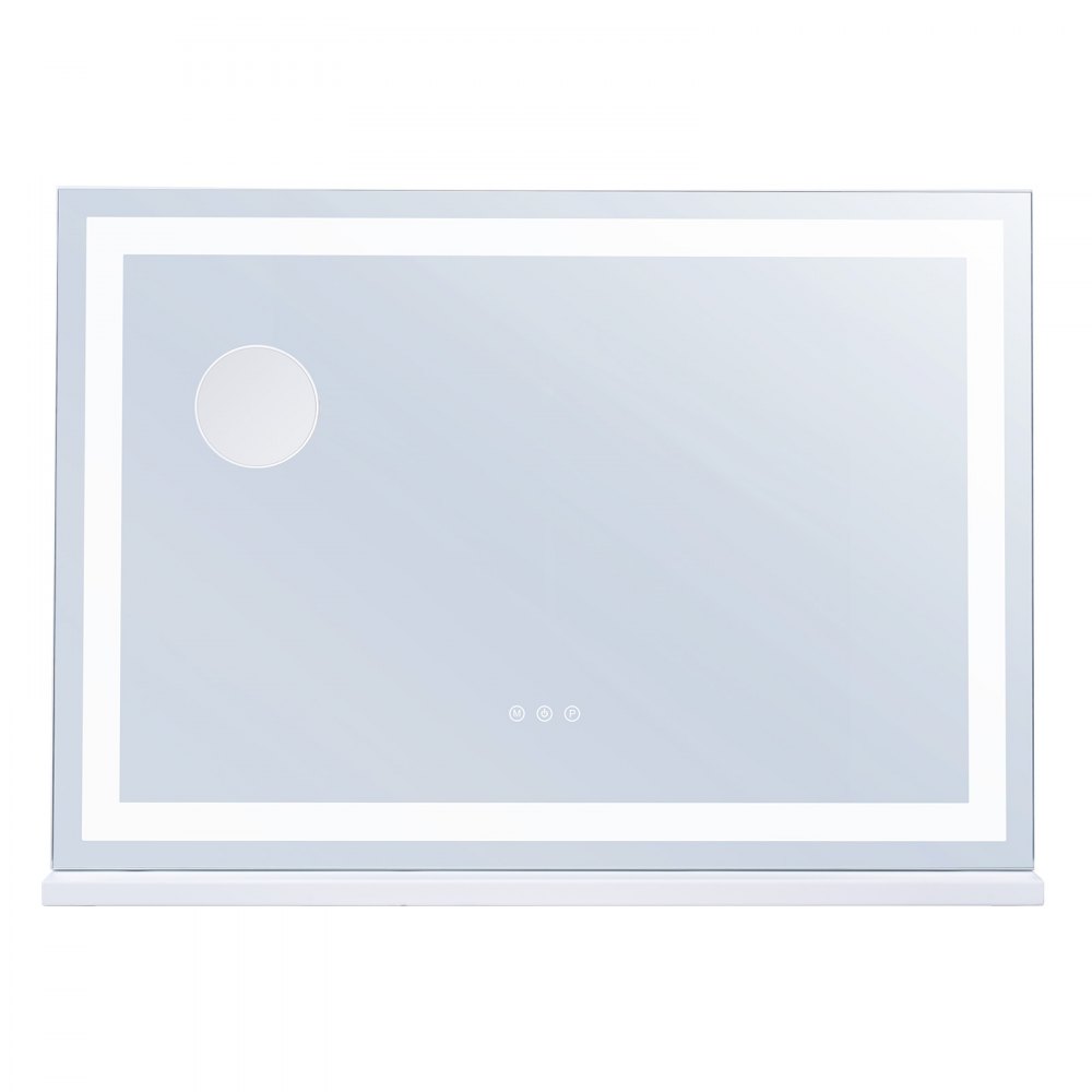 Gran Espejo de Maquillaje Iluminado con Tres Modos de Iluminación de Color, LED Luces, Aumento de 5X, Puerto USB, Control Táctil Inteligente, Montaje en Pared de Escritorio, 800 x 120 x 572 mm - Fontanería