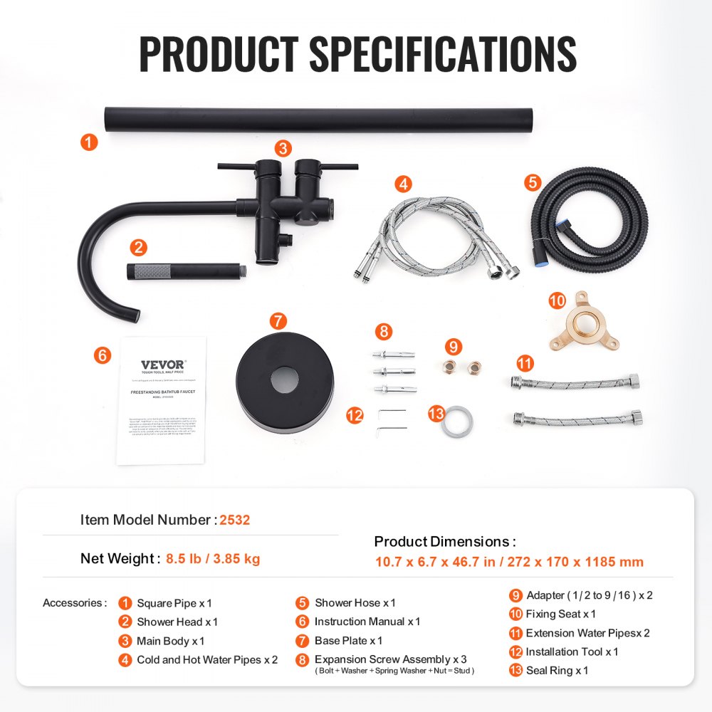Agua de alto flujo estable: El grifo de bañera independiente adopta una fina artesanía para garantizar un alto caudal de 1,61 gpm/6,12 L por minuto, llenando rápidamente su bañera en poco tiempo. El interruptor del núcleo de la válvula de cerámica incorporado garantiza un flujo de agua más suave y al mismo tiempo previene eficazmente fugas y goteos.