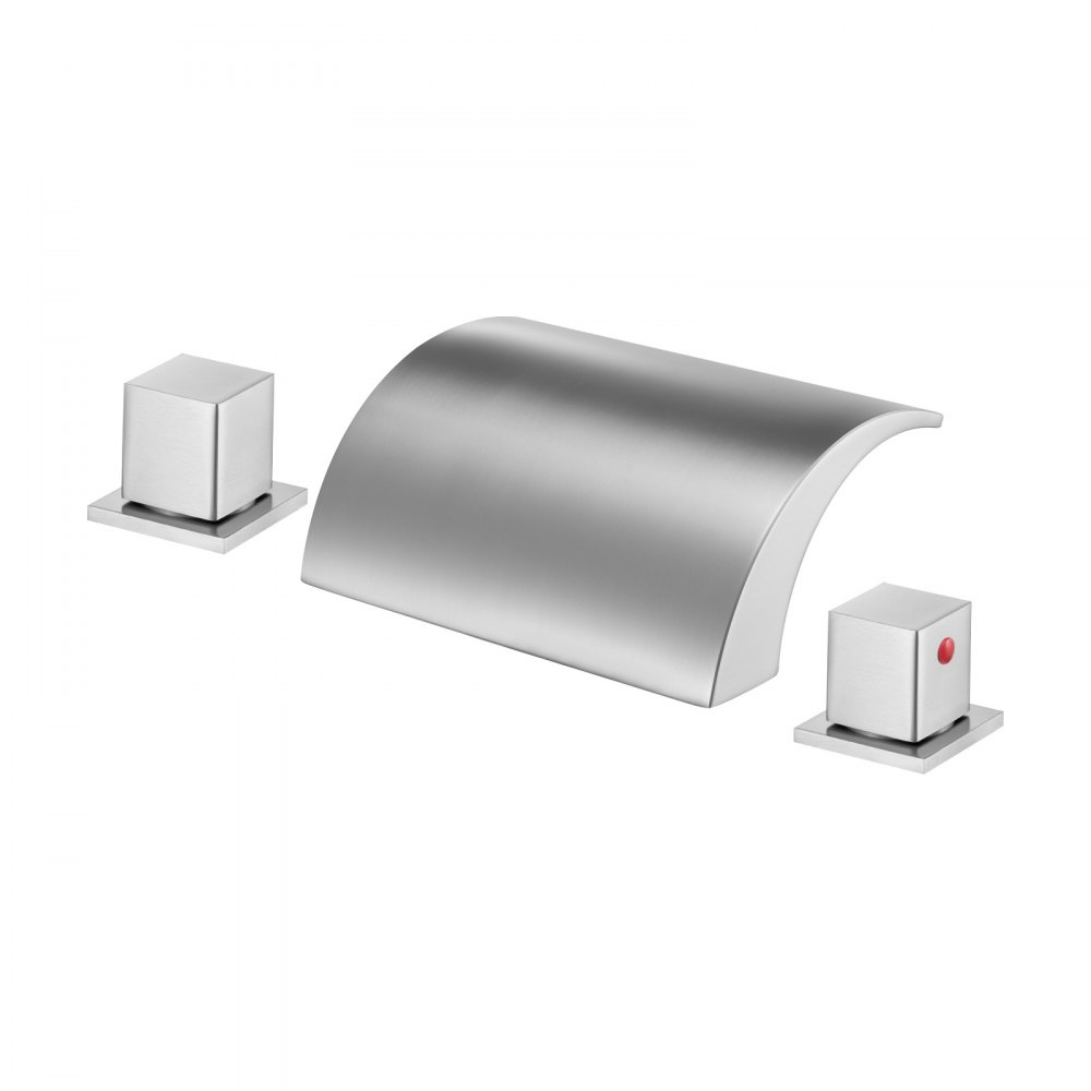 Grifo de Bañera Romano de 3 Orificios y 2 Manijas, de Acero Inoxidable con Caño Bajo para Montaje en Cubierta, para Lavar Mascotas, Fácil de Instalar, Color Plateado, 135 x 180 x 170 mm