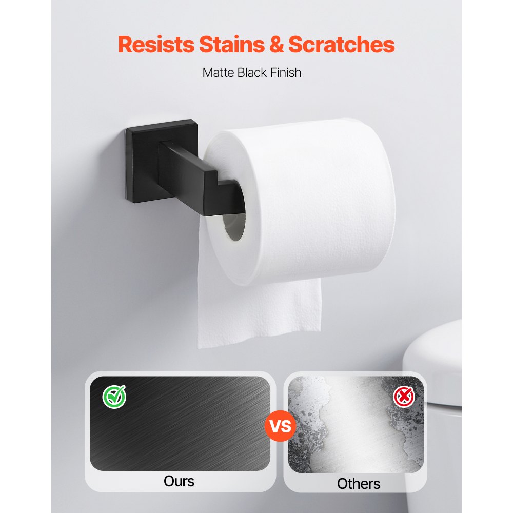 Materiales de alta calidad: Este juego de baño negro mate está fabricado en acero inoxidable de alta calidad y es impermeable, resistente al óxido y a la corrosión, lo que garantiza una larga vida útil. Su robusta construcción metálica garantiza años de uso confiable, mientras que su diseño de montaje en pared proporciona mayor estabilidad y capacidad de carga