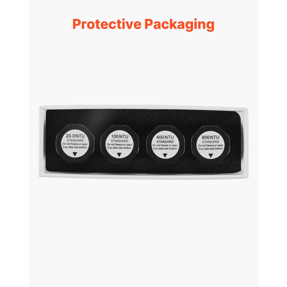 Kit Completo de Solución de Calibración de Turbidez, 20/100/400/800 NTU, 20 ml Cada Uno, 4 uds, para Turbidímetro TN2000, Inserto Protector a Prueba de Golpes, Diseño de Botella Sellada