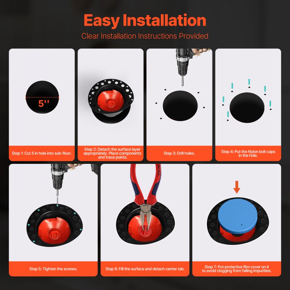 Flujo de drenaje uniforme: El kit de instalación empotrada para bañera se fija de forma segura entre la base y las baldosas de la superficie, lo que proporciona un drenaje estable y confiable. La tapa antipolvo protege la tubería de drenaje durante la construcción y permite realizar múltiples pruebas de presión de aire para garantizar un rendimiento impecable