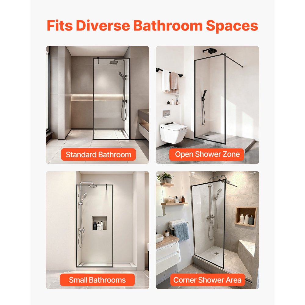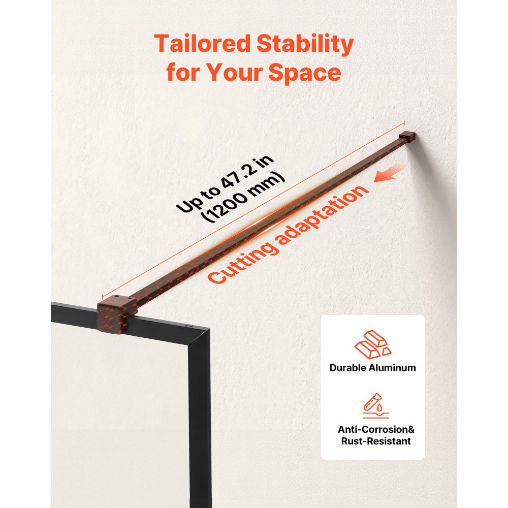 Elegante marco de aleación de aluminio con barra de soporte: Nuestro panel de ducha de vidrio fijo cuenta con un marco de aleación de aluminio de alta calidad y una barra de soporte recortable, lo que garantiza una instalación estable, mayor durabilidad y un rendimiento duradero sin tambalearse ni deformarse