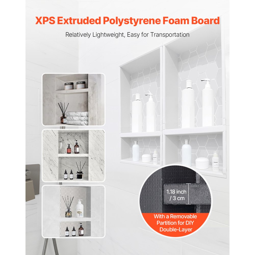 Materiales de alta calidad: Fabricado con tablero de espuma XPS (libre de HCFC), este nicho ofrece una durabilidad excepcional y es resistente a la descomposición. Además, la espuma XPS es ligera y fácil de manipular y colocar