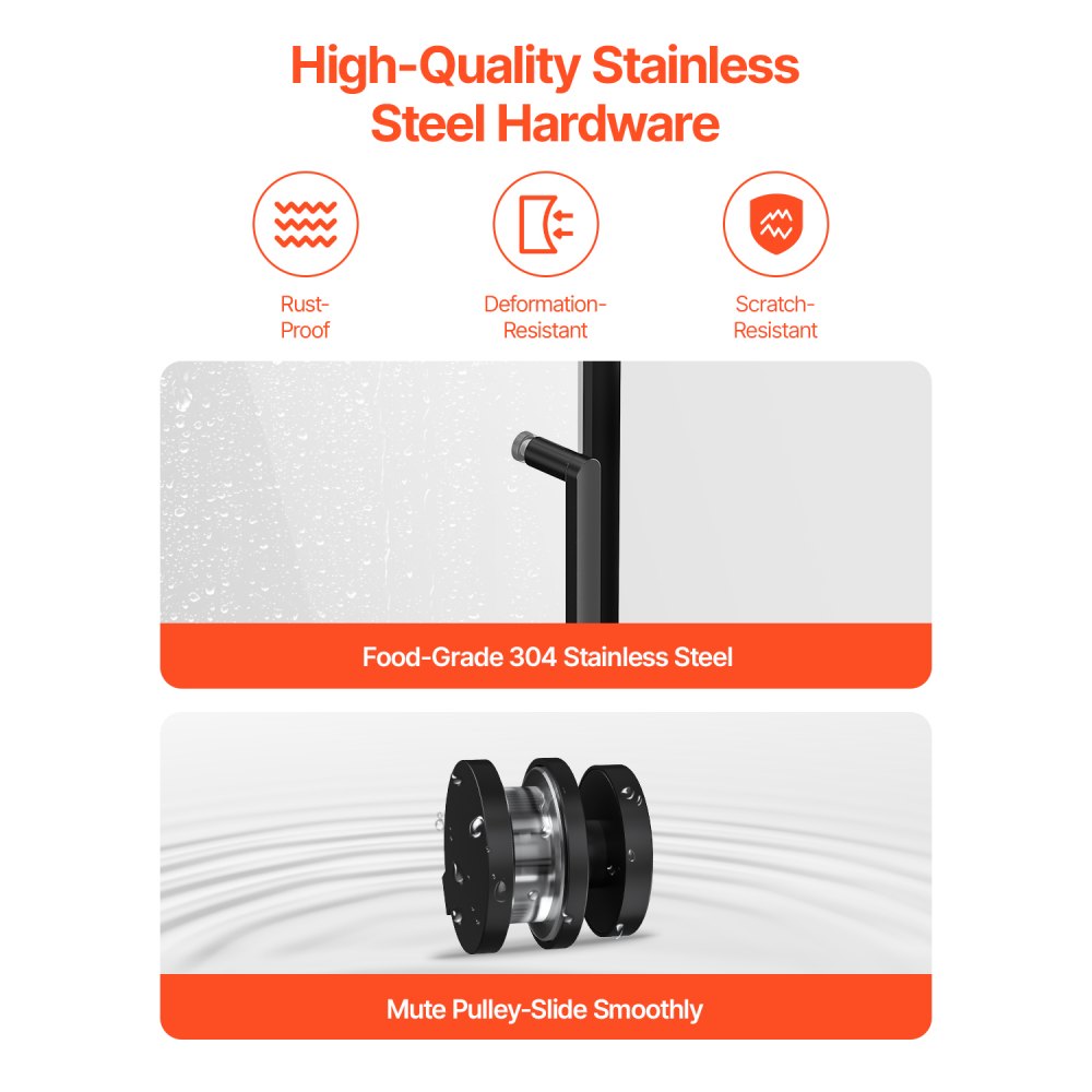 Materiales duraderos y de primera calidad: La estructura principal de la puerta corrediza para ducha para bañera está hecha de una aleación de aluminio liviana pero muy duradera. Los herrajes de acero inoxidable de alta calidad, incluidos los rodillos y las manijas, garantizan estabilidad y un rendimiento duradero