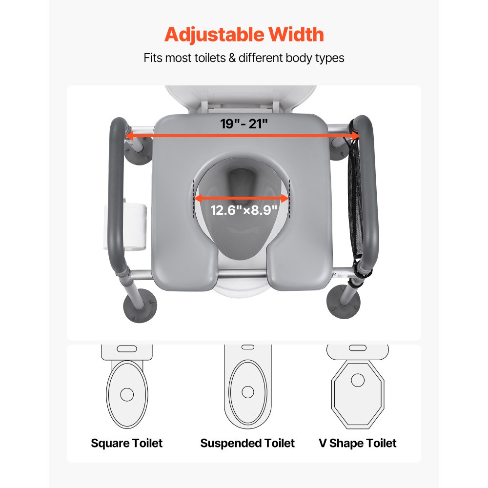 Inodoro con inodoro 4 en 1: Fabricado con un marco de aleación de aluminio reforzado, nuestro inodoro soporta hasta 226 kg. Úselo como inodoro de cabecera, asiento de inodoro elevado, marco de seguridad para inodoro o silla de ducha: una solución confiable para todas sus necesidades de cuidado en el hogar