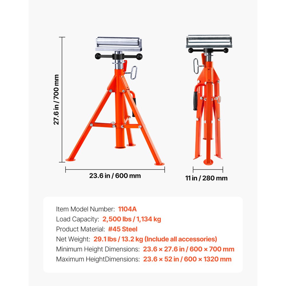 Estabilidad absoluta: Confíe en el soporte rodante VEVOR, confíe en sus proyectos. Su robusta base triangular proporciona un soporte inquebrantable, capaz de soportar cargas de 2500 libras y acomodar tuberías de hasta aproximadamente 12 pulgadas de diámetro.