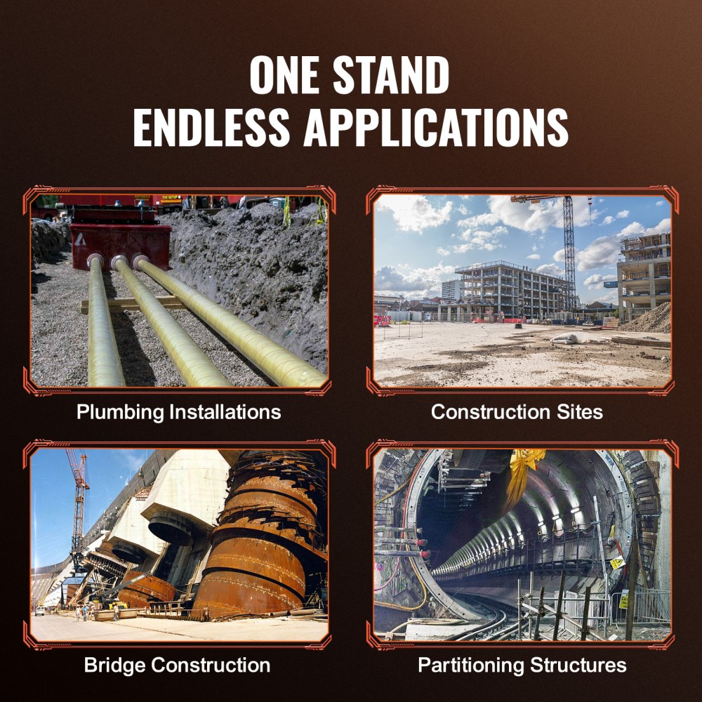Estabilidad absoluta: ¡aumente su trabajo en tuberías con el soporte para tuberías VEVOR con cabezal de rodillo! La base triangular proporciona un soporte inquebrantable, puede soportar una carga pesada de 1134 kg y admite tubos de hasta aproximadamente 91 cm.