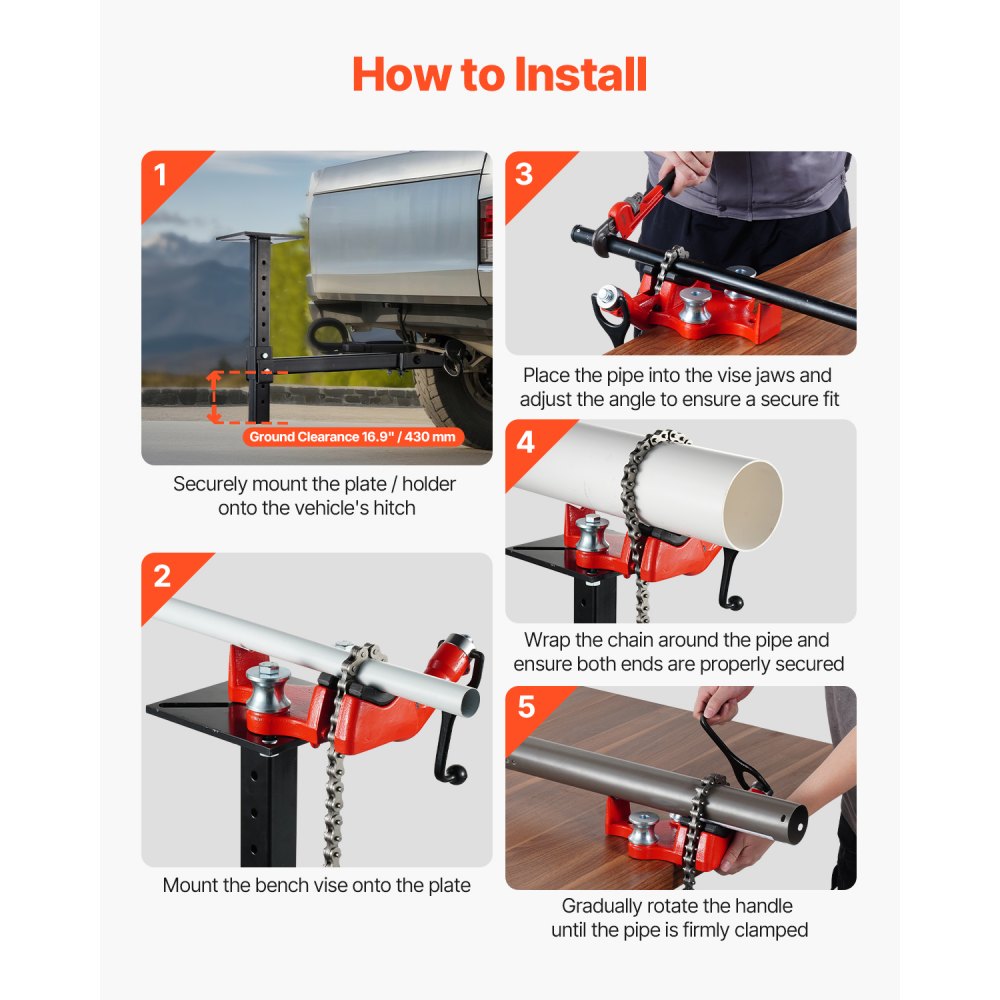 Amplias aplicaciones: Nuestro tornillo de banco de cadena y soporte de tornillo de enganche satisfacen las diversas necesidades de trabajos de bombeo, desde el hogar hasta las reparaciones de bombeo industriales, ideales para usar en sitios de construcción, casas, garajes, talleres y más