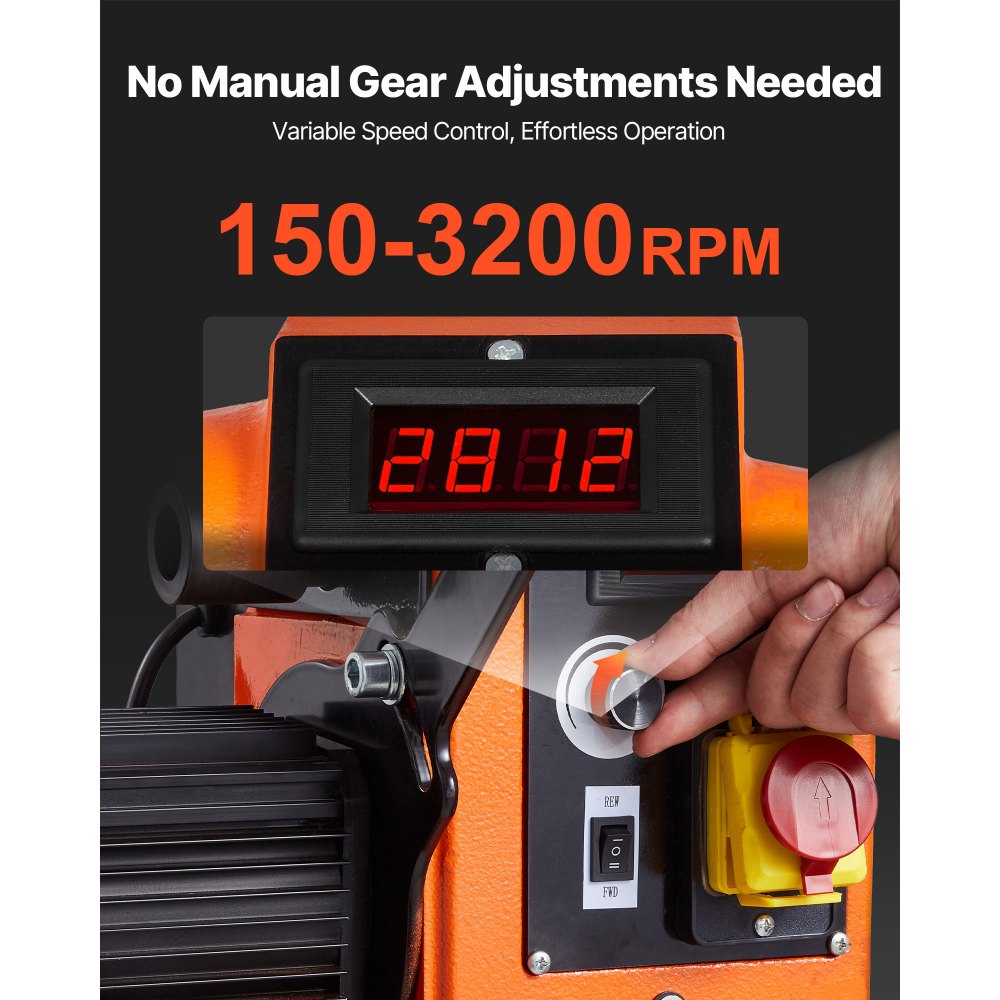Funcionamiento sin complicaciones: Impulsado por un motor de CC sin escobillas, ¡no necesita reemplazar las escobillas de carbón! Disfrute de un funcionamiento suave y silencioso con control de velocidad variable de 150 a 3200 RPM y sin ajustes manuales de marcha