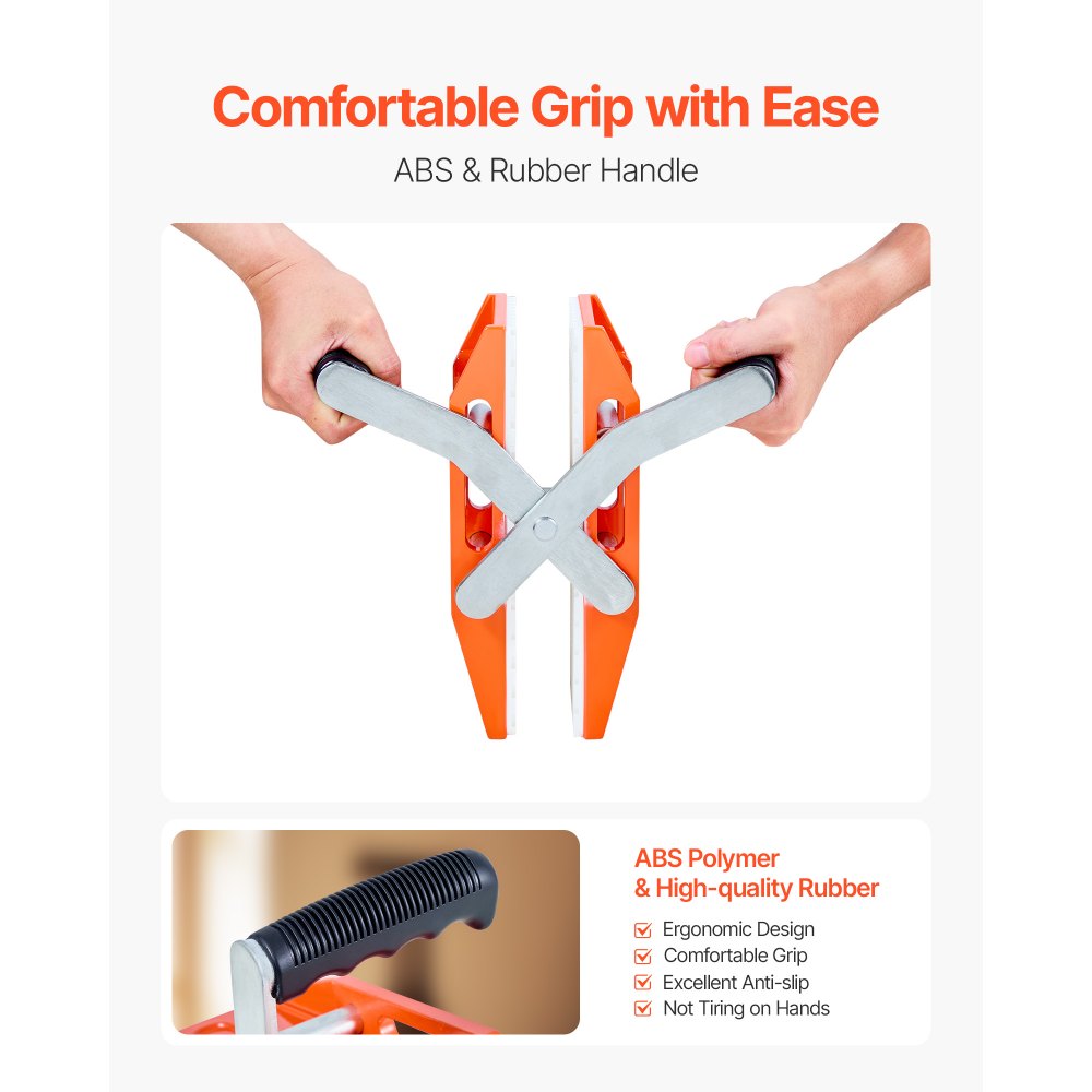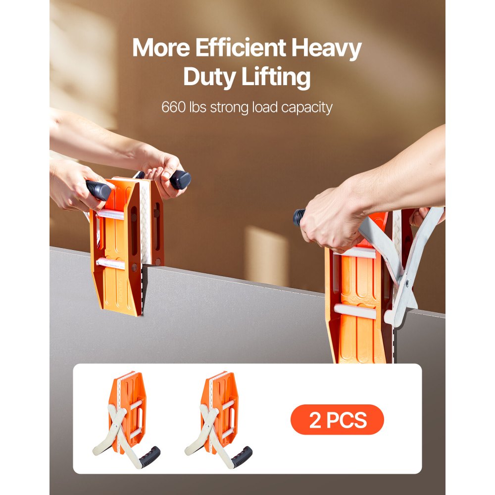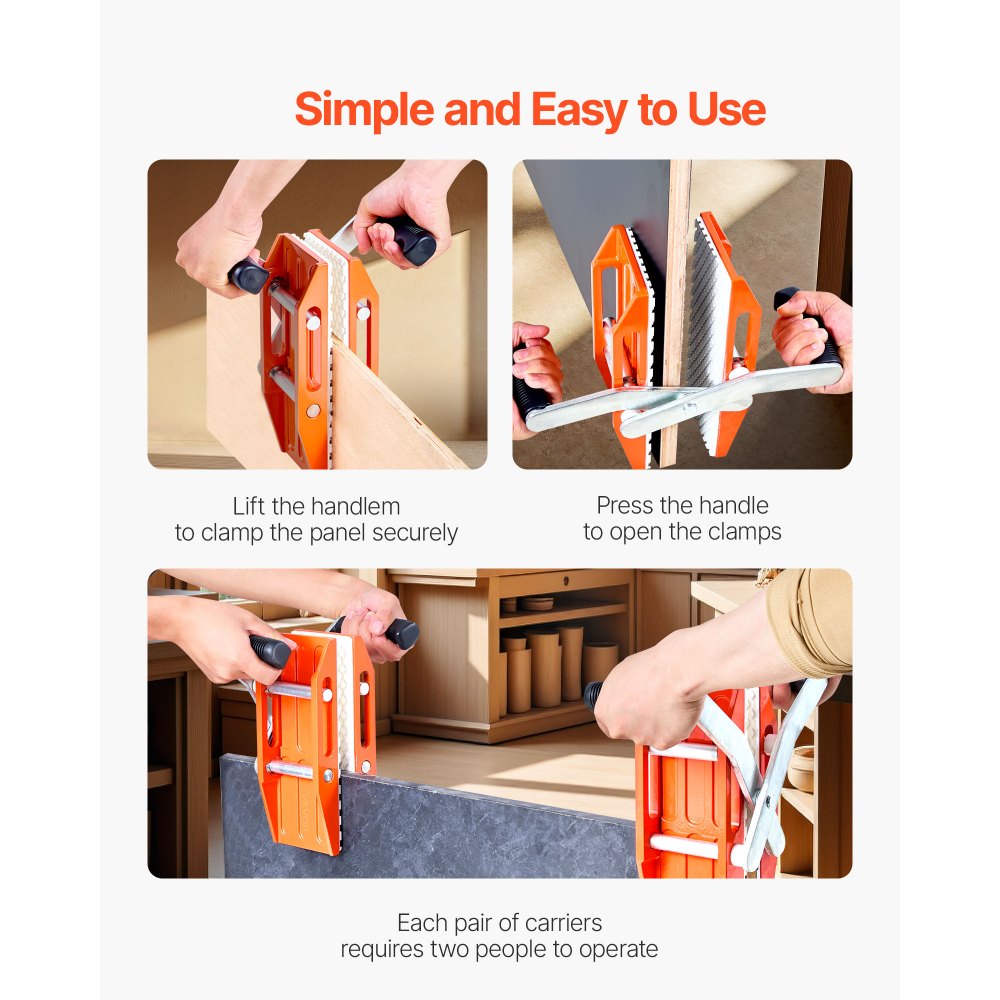 Transporte eficiente de paneles: Manipule materiales pesados con facilidad. Este par de abrazaderas de transporte soporta hasta 300 kg. Ideal para construcción y renovación, requiere dos personas para un manejo suave, estable y seguro