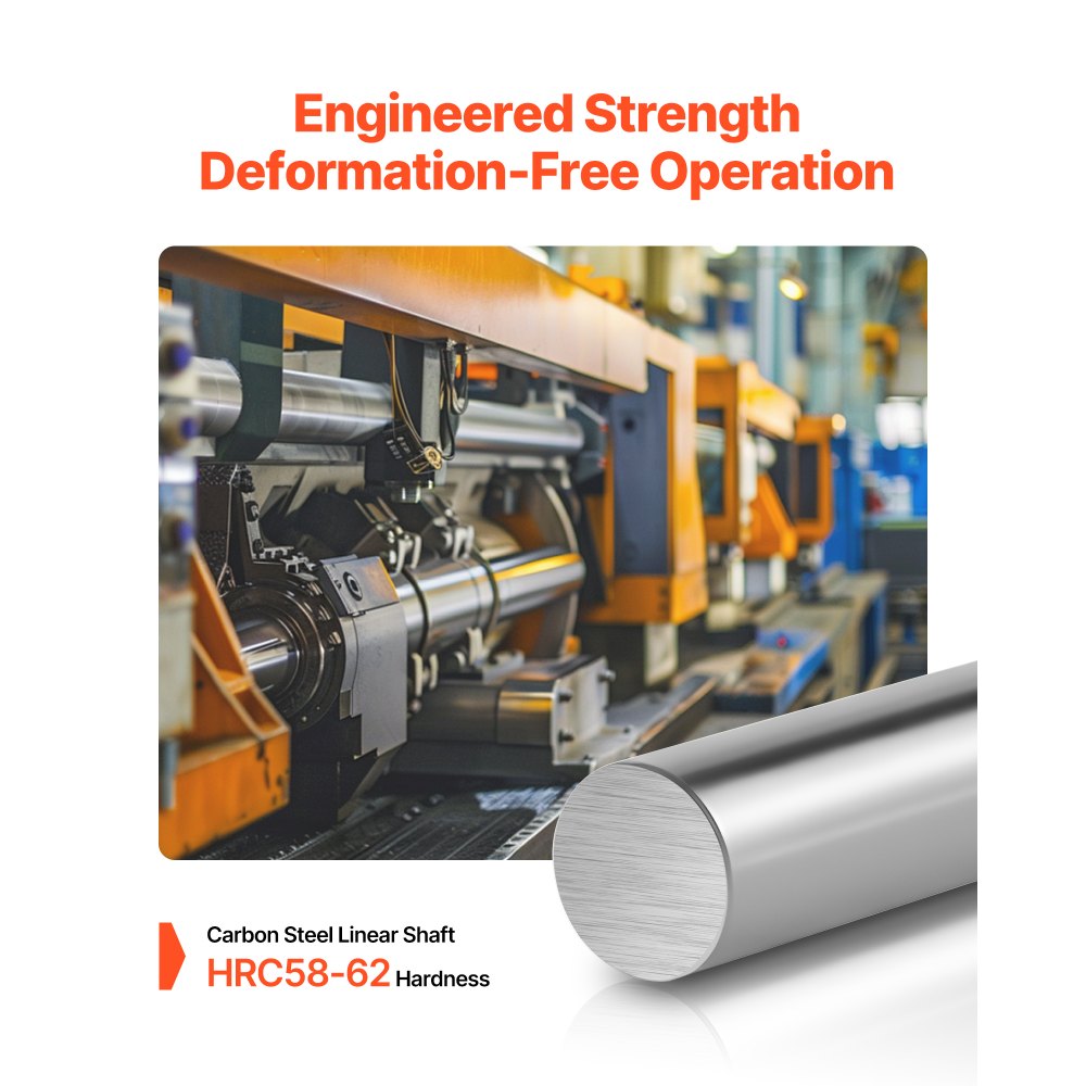 Eje de acero al carbono endurecido: Fabricado en acero al carbono con una dureza de HRC58-62, el eje del riel guía lineal ofrece una resistencia excepcional y resiste la flexión bajo un uso intensivo, manteniendo una precisión constante en sistemas mecánicos y de automatización