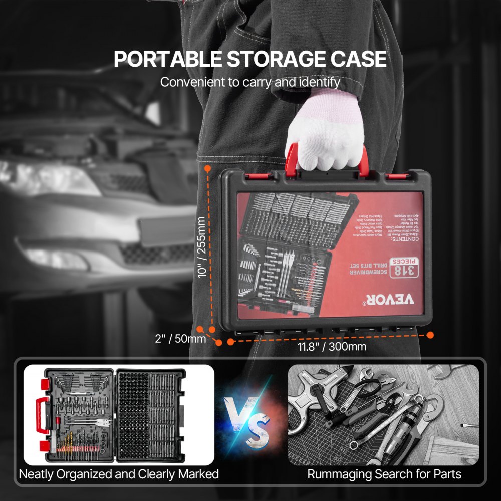 Juego de brocas integrado: este juego de brocas y destornilladores de 318 piezas incluye varias brocas, destornilladores y destornilladores de tuercas. Permite taladrar y fijar en metal, madera, mampostería y plástico, lo que lo hace ideal para aficionados y profesionales del bricolaje. También es un regalo ideal para familiares y amigos.