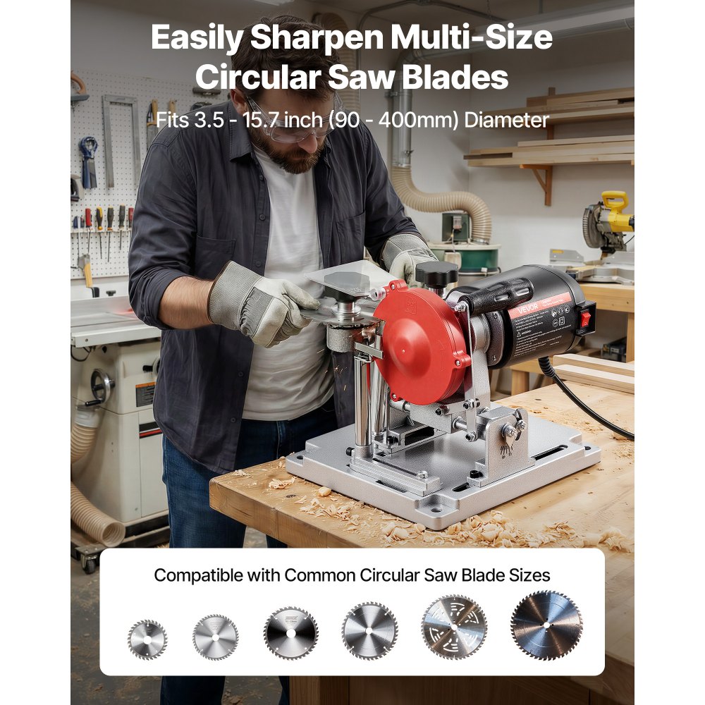 Afiladora de Discos de Sierra Circular 140 W 5700 RPM, Afilador de Hojas de Sierra Circular para Hojas de 90 a 400 mm con Muela de Diamante y Cerámica Ajuste para Taller Carpintería y Bricolaje - Herramientas manuales