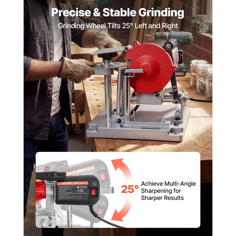 Afilado eficiente y potente: Impulsada por un motor de 140 W que alcanza una velocidad de 5700 RPM, esta afiladora de hojas de sierra circular VEVOR restaura hojas desafiladas o desgastadas, proporcionando cortes más limpios y precisos