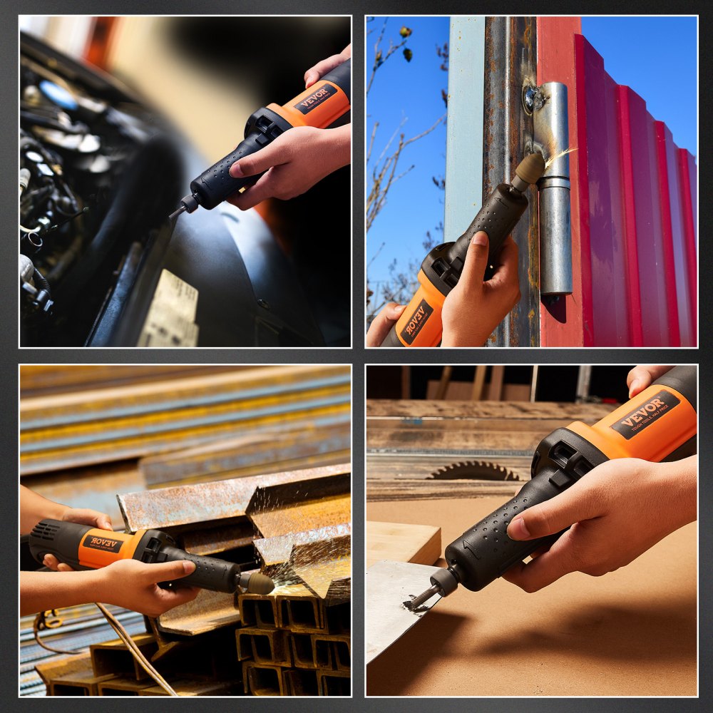 Dé rienda suelta a su potencia: La amoladora de troquel de VEVOR cuenta con un motor de grado industrial con un par excepcional, una salida más rápida y un diseño duradero, todo con un peso de solo 1,9 kg para un uso fácil y flexible. Es capaz de realizar tareas de procesamiento de cargas medianas a pesadas en entornos profesionales.