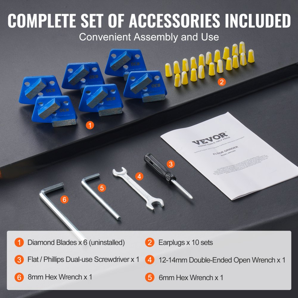 Cuchillas reemplazables: La amoladora de concreto está equipada con cuchillas de disco de molienda reemplazables, las cuchillas de diamante muelen eficientemente 3230-5382 pies cuadrados/300-500 m², son compatibles con las cuchillas de diamante del mercado, brindando una resistencia al desgaste superior, larga vida útil y fácil corte.