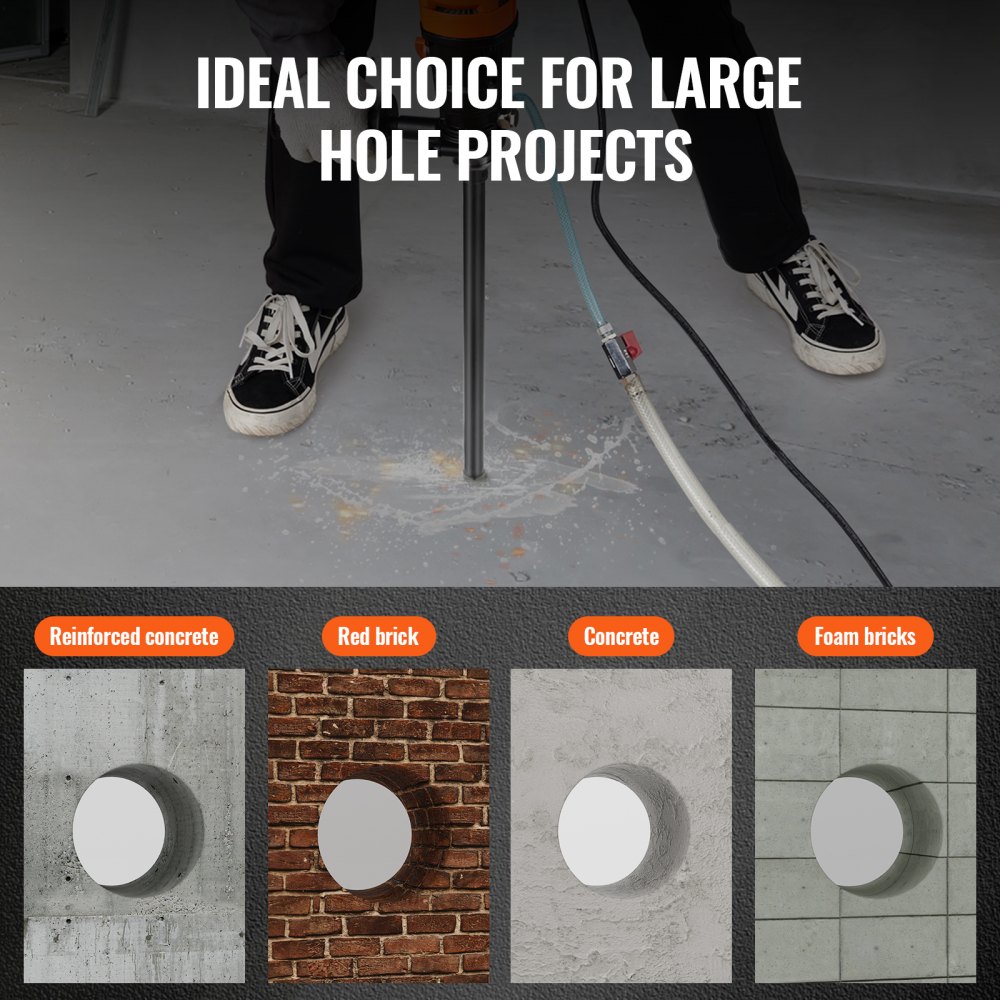 Versátil: nuestra broca húmeda es ideal para perforar hormigón armado, ladrillo, hormigón, piedra espuma y otros materiales resistentes. Es ampliamente utilizado en instalaciones de aire acondicionado, tuberías, barandillas de escaleras, carreteras, aeropuertos y muchas otras áreas de la construcción.