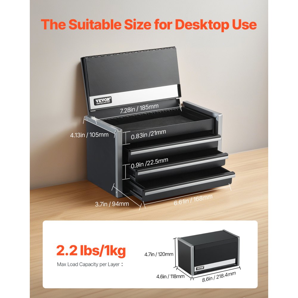 Minicaja de herramientas de metal: La caja de herramientas de acero mide 8,6 x 4,6 x 4,7 pulgadas y pesa 3,36 libras. Es compacta y liviana, lo que la hace ideal para colocarla en su escritorio como una solución de almacenamiento eficiente para organizar varios artículos pequeños