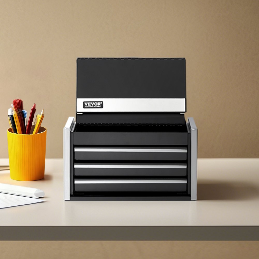 Uso multifuncional: Además de almacenar pequeñas herramientas en su banco de trabajo, esta mini caja de herramientas con cajones también puede servir como caja de almacenamiento para artículos de papelería, cosméticos, joyas, materiales de manualidades y más. Es ideal para usar en la oficina, el dormitorio, el vestidor o el taller