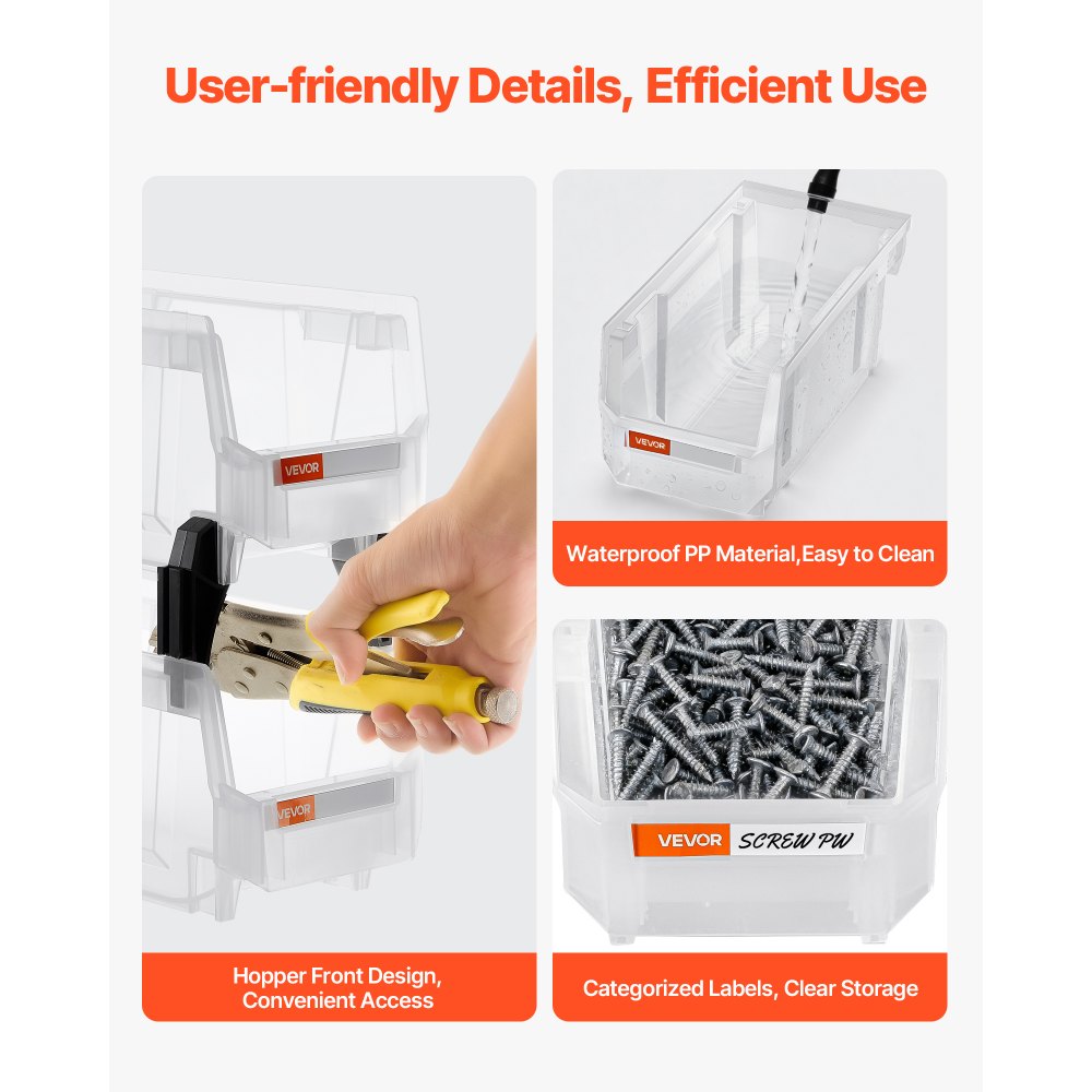 Almacenamiento multiusos: Apilables, montados en la pared o fijados a un tablero perforado, estos contenedores de almacenamiento apilables mantienen pequeños electrodomésticos y artículos esenciales al alcance de la mano. Ideales para salas de manualidades, cocinas, baños, dormitorios, lavanderías, oficinas, garajes, salas de juegos y más