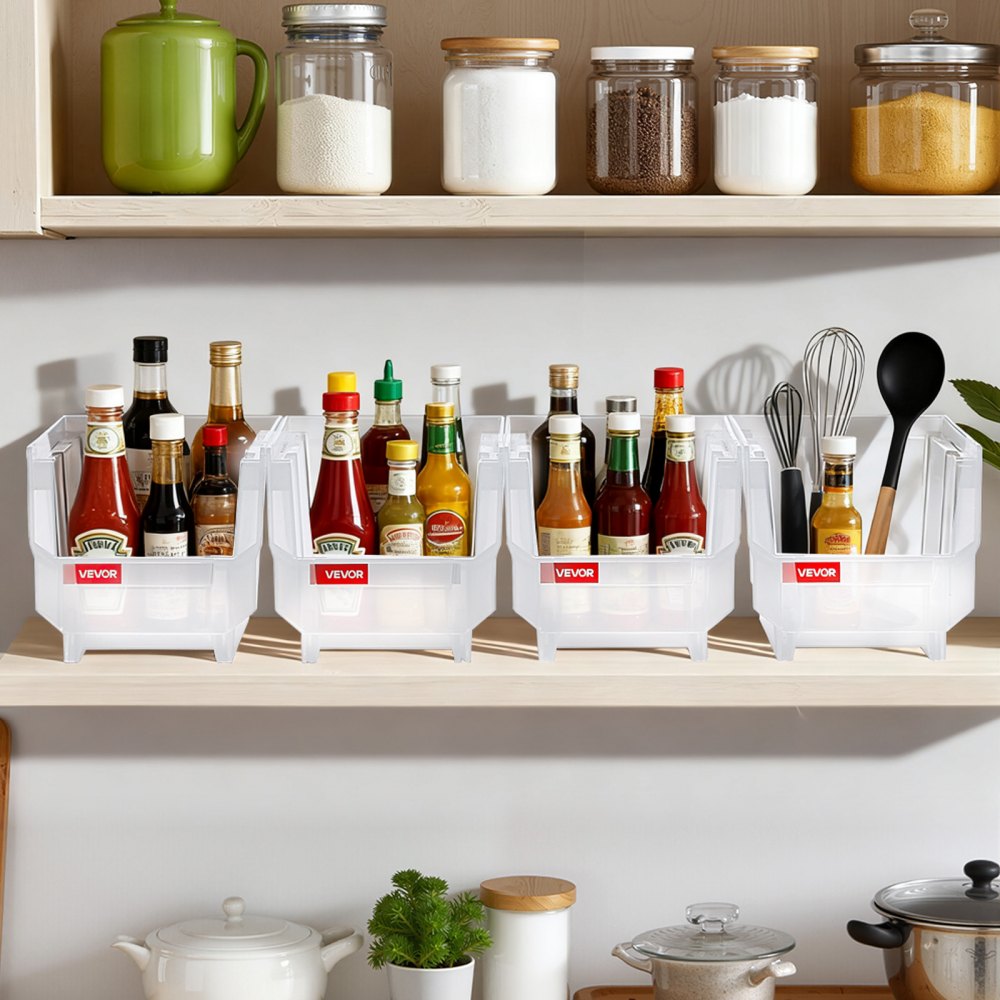 Cajas Apilables de Almacenamiento, 276 x 140 x 130 mm, para Organizar y Almacenar, con Frente Abierto, para Armario, Garaje, Piezas Pequeñas, Suministros de Oficina, Transparentes, 8 uds - Herramientas manuales