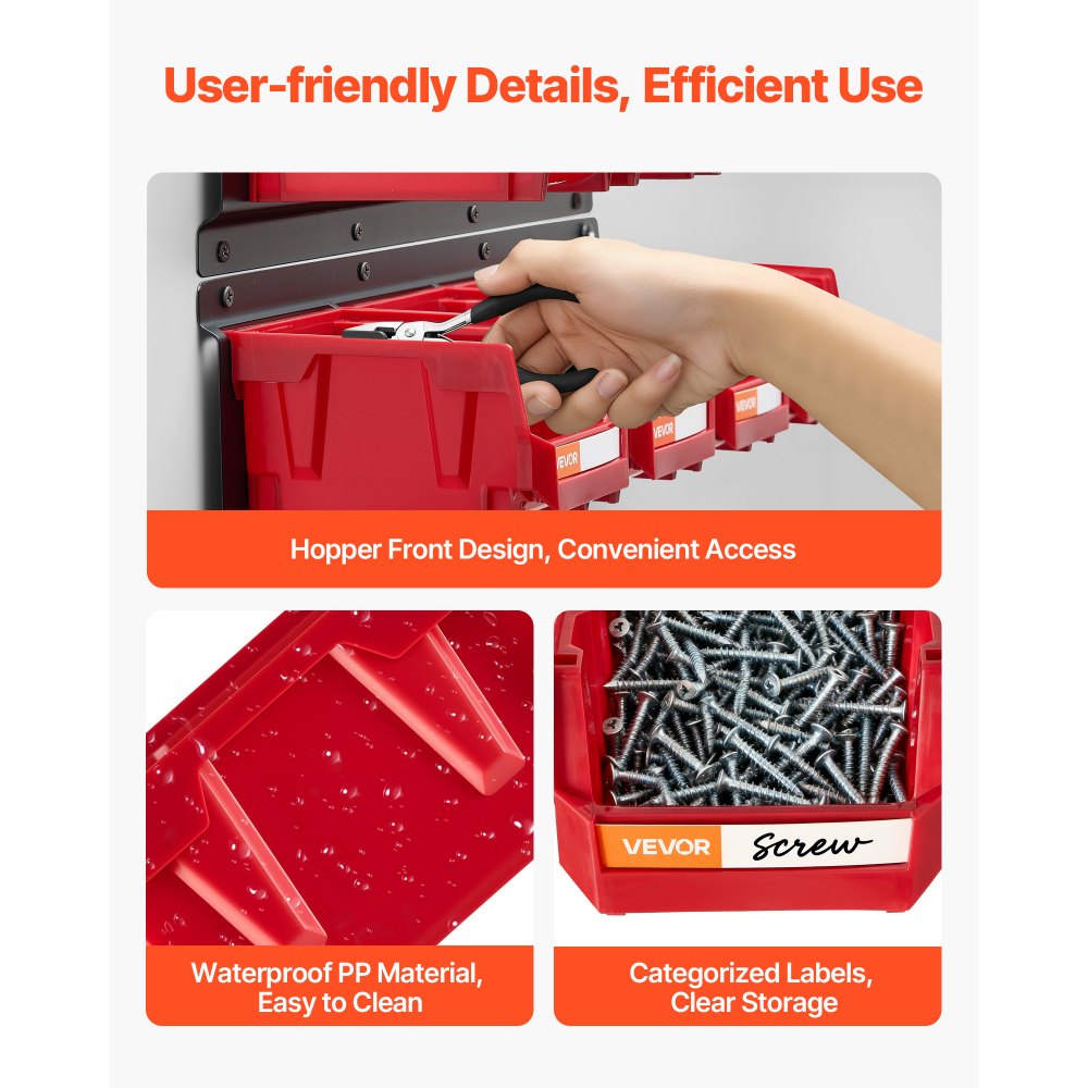 Cajas Apilables Visibles para Montar en la Pared, 137 x 105 x 75 mm, y 3 Rieles Metálicos, para Tornillos, Tuercas, Pernos y Clavos, para Taller, Sala de Manualidades y Garaje, Rojo, 12 uds - Herramientas manuales