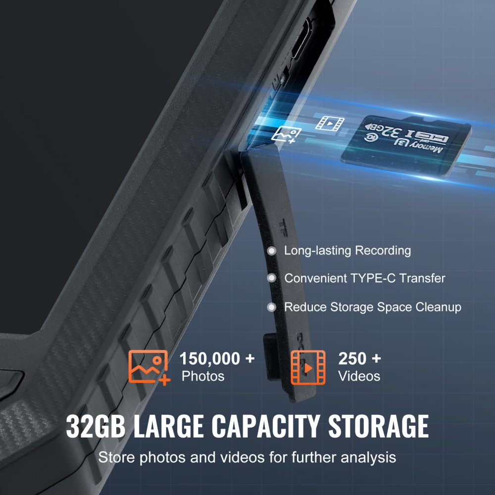 Operación fácil de usar: el boroscopio VEVOR 1920*1080 está optimizado con varios diseños bien pensados: toma de fotos y videos, rotación de imagen de 180°, batería de alta capacidad de 2000 mAh, carga rápida tipo C, tarjeta de 32 GB y accesorio útil: gancho, imán, tapa protectora