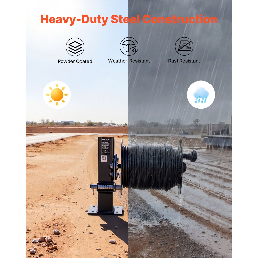 Resistente y duradero: Fabricado en acero resistente con acabado protector de recubrimiento en polvo, este carrete es resistente a la intemperie y al óxido. Diseñado para soportar condiciones exigentes y mantener la estabilidad estructural