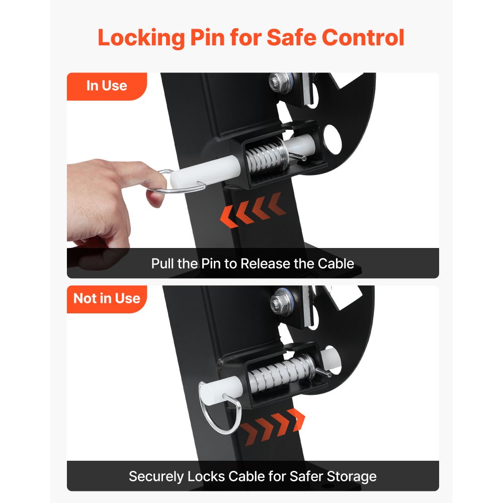 Gestión controlada de cables: Cuenta con un mecanismo de pasador de bloqueo que permite liberar el cable suavemente durante el uso y bloquearlo de forma segura cuando no está en funcionamiento, reduciendo el riesgo de liberación accidental del cable
