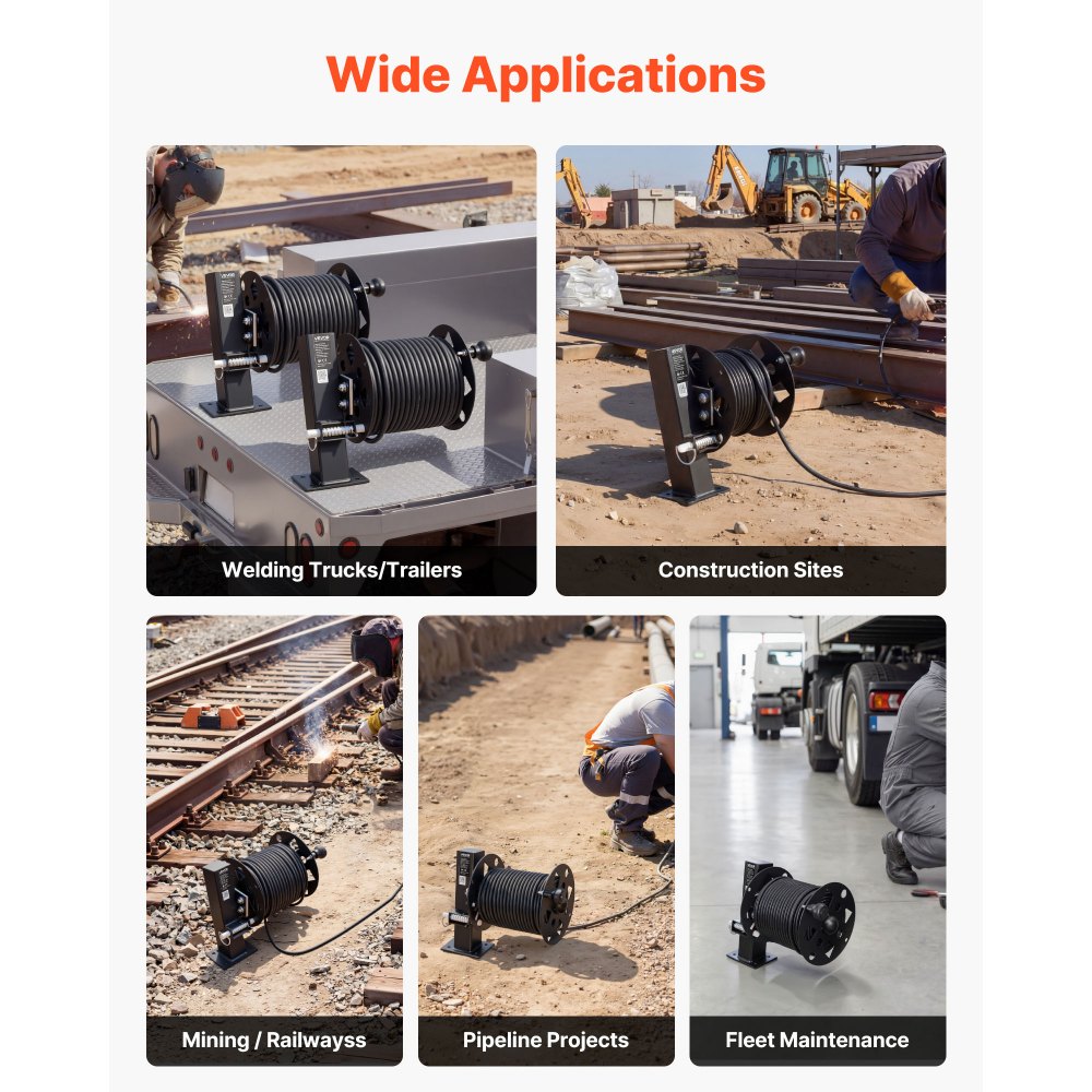 Carrete de Cable de Soldadura, Juego de 2, Enrollador de Manguera de Acero para 45,7 m (50 mm²) y 38 m (70 mm²), con Pasador de Bloqueo para Obras, Camiones de Servicio y Mantenimiento de Flotas - Herramientas manuales